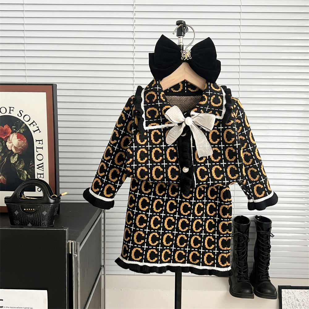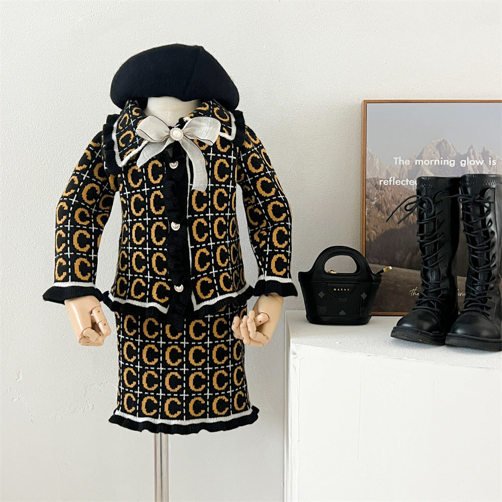 Kids' Sweater Suit Knitted Cardigan Two-piece Set