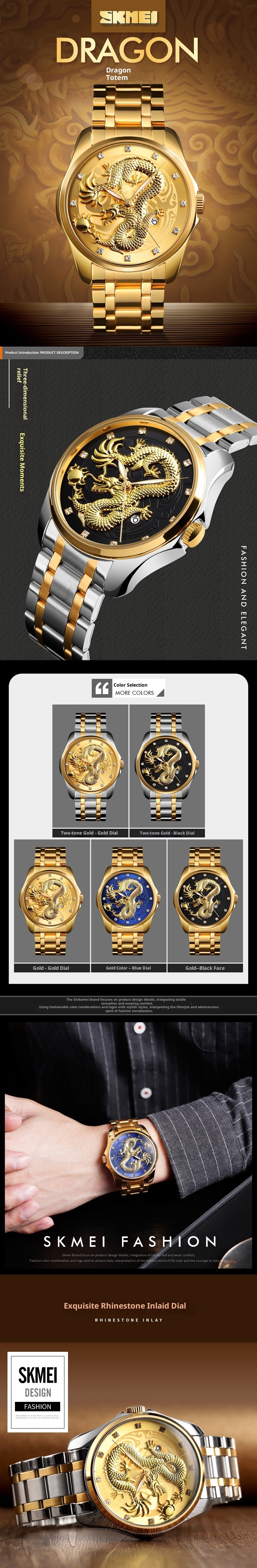 Chinese Fashion Dragon Totem Embossed Stainless Steel Strap Men