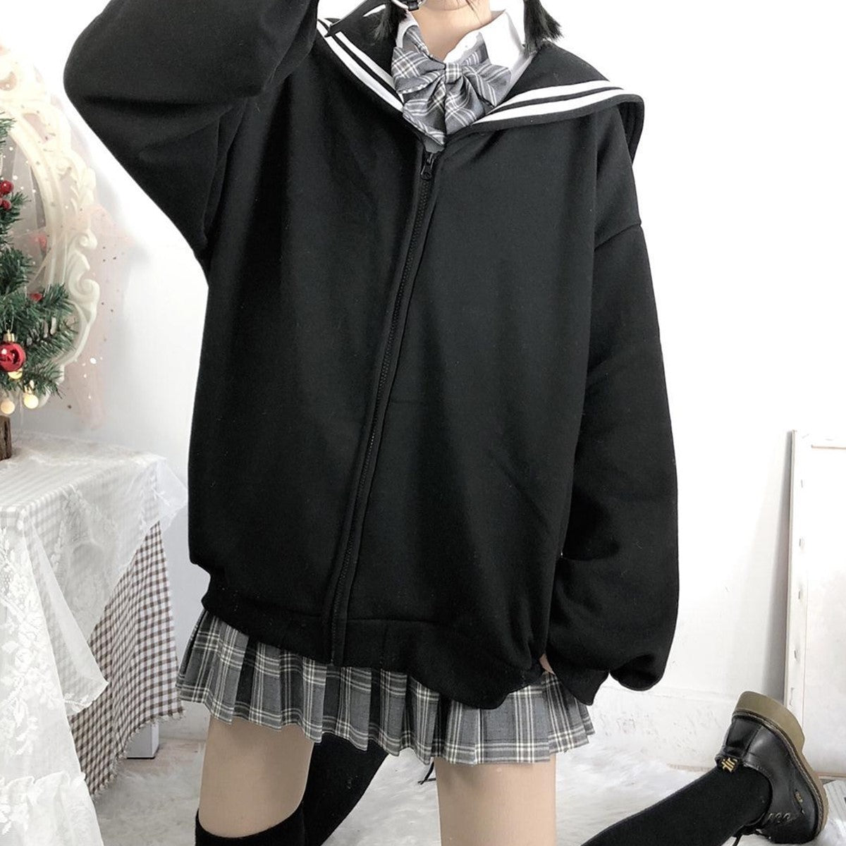 Color: 933#Navy Collar Jacket Black[Thin Section]