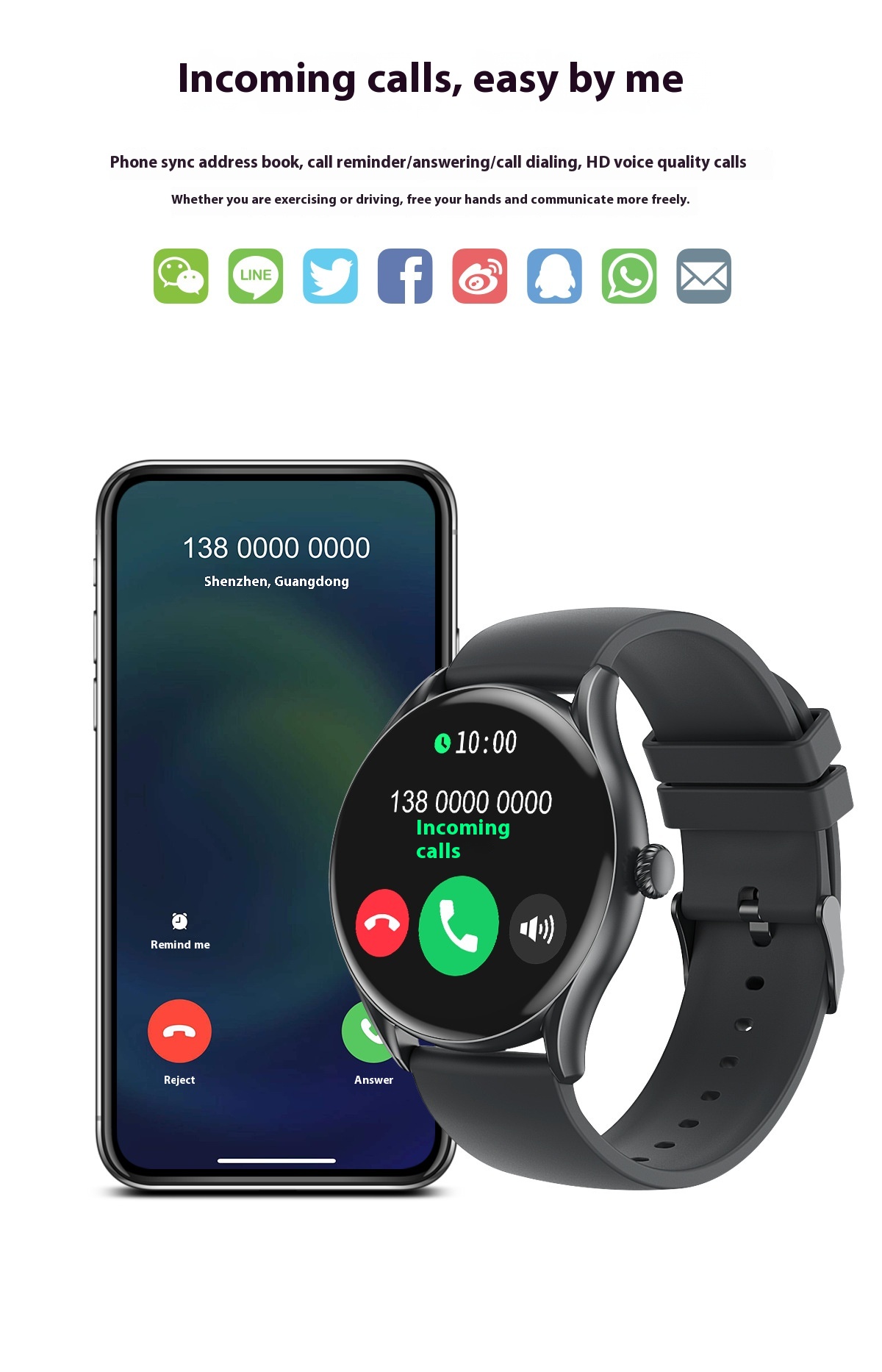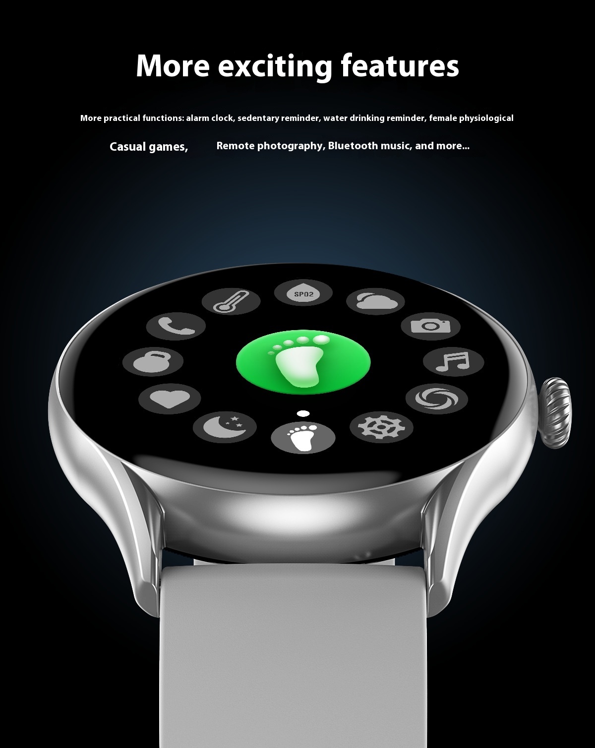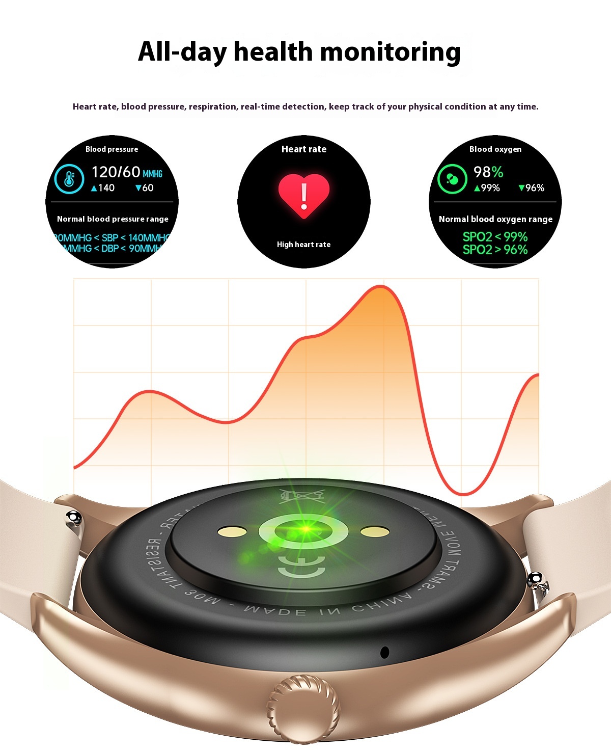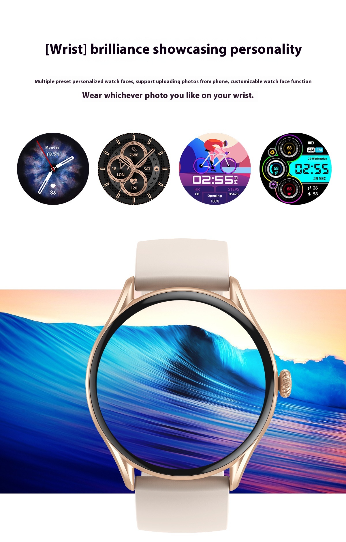 Functions: Waterproof, step counting, heart rate monitoring, Bluetooth calling, smart reminder, remote control selfie, information push